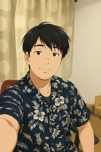 続いては、私自身の自撮り写真をもとに「京都アニメーション風」で生成していただいたものでございます。理由はとくに深いものではなく、「アニメといえば京アニだろう」という、ある意味で非常に安直な発想でございました。
